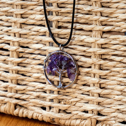 Elevate your jewellery collection with a Tree of Life Pendant. Each Tree of Life pendant is meticulously crafted, featuring branches that cradle a genuine gemstone. There are six different types of pendant: Jade, Carnelian, Sodalite, Amethyst, Rose Quartz and Tiger's Eye.